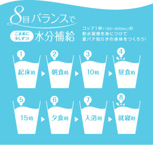 体は一度に250mlしか吸収できないようですので、こまめに水分補給をこころがけましょう。
